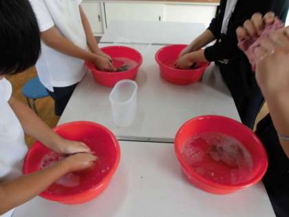 学習の様子 公開日 2024/10/10 更新日 2024/10/10 学校日記 6年生は家庭科で洗濯について学習していました。洗濯機がしてくれていることを手洗いで体験し、普段の選択との違いなどを確認していました。 いいね(0)