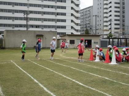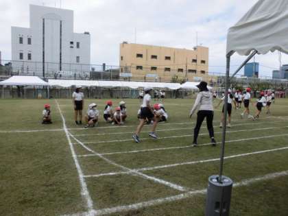 4年生はリレーの練習をしていました。運動会に向けて頑張っています。