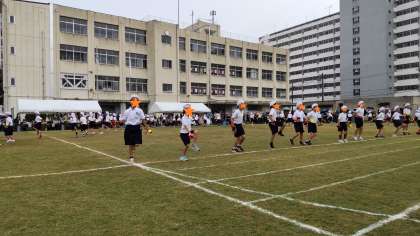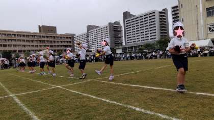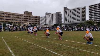 低学年の団体演技、雨の中一生懸命に踊りました。