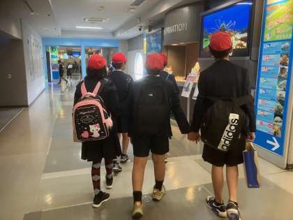 次は何処をまわるかなどを、班で話し合って決めることで、集団づくりをしています。