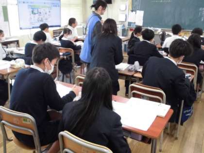 6年生は英語で原産地の言い方を練習していました。fromの使い方に苦戦していました。