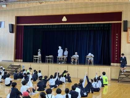 給食のルールを交えながら劇をしていました。
