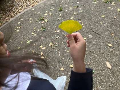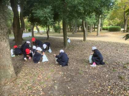 大阪城公園を周り、ドングリや落ち葉など、たくさんの秋を探していました。