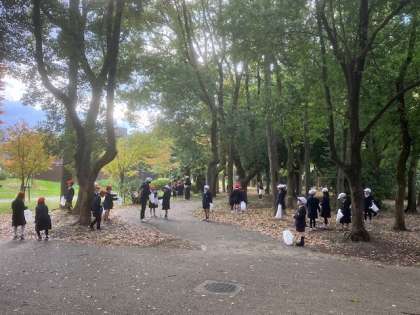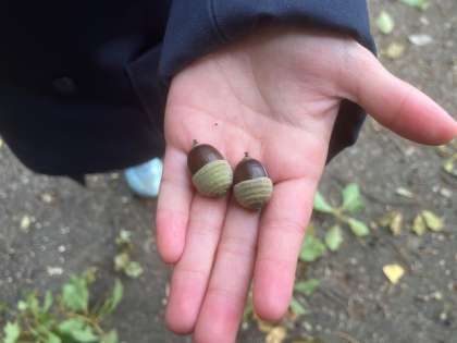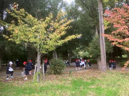 子どもたちは、秋を見つけるたびに見せに来て、大切に袋に集めて帰ってきました。