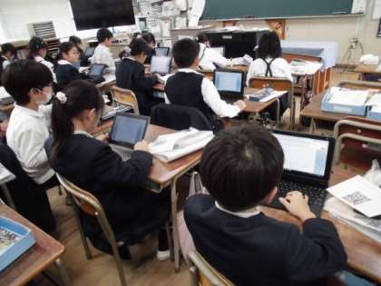 3年生は、パソコンを使ってアンケートをしたり、学校用のアプリの使い方を確認したりしていました。