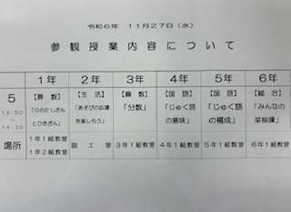各学年の内容と場所を掲載させていただきます。