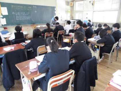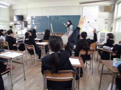 6年生は、反比例の関係について、表でまとめ、縦、横それぞれにどのような関係性があるのかを考えていました。
