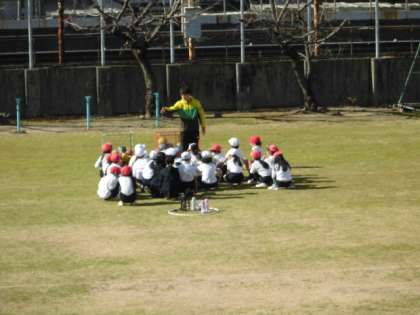 3年生は、体育でボール運動をしていました。どのようにすればプレーがうまくいくのか、考えるように促しながら話をしていました。