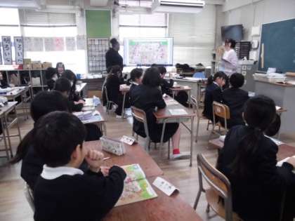 学習の様子 公開日 2025/01/15 更新日 2025/01/15 学校日記 2年生は、国語で自分の作った文章をカルタにしていました。パソコンを使って絵のヒントを見つけていました。 4年生は英語の学習で道案内をしていました。ゲームを取り入れて楽しく学習していました。 6年生は、算数の単位の関係をまとめていました。様々な単位の変換に苦戦していました。 いいね(0)