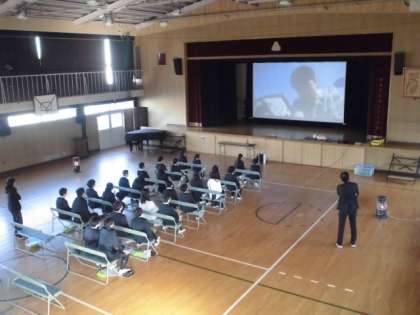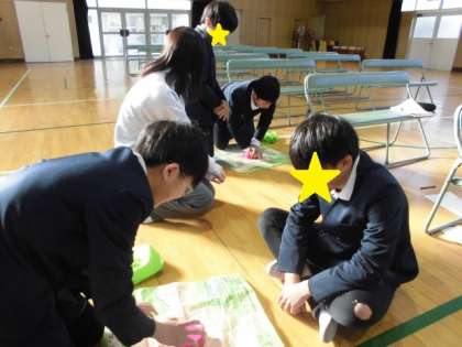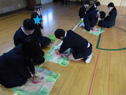 6年生は、救命救急の学習をしました。動画で状況と対応を知り、実際に胸骨圧迫を体験していました。そのあと、実際に自分たちにできることや周りの人に助けてもらうことなど、今日学習したことを発表していました。