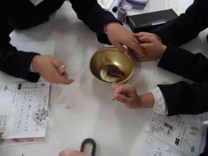 3年生は、理科で磁石の実験をしていました。身近なものでも詳しく調べてみると新たな発見があり、驚いていました。