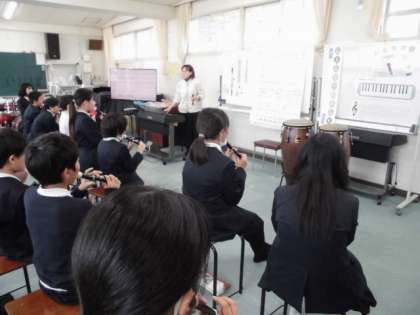 5年生は、音楽でリコーダーの練習していました。♯など難しい指の動きに苦戦しながらも頑張っていました。