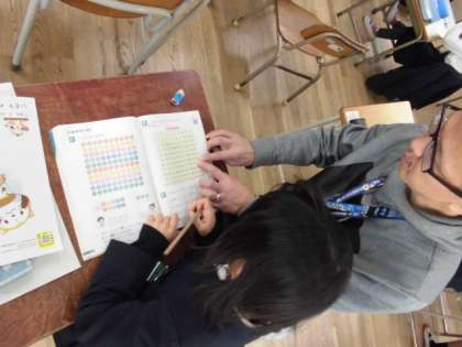 1年生は、算数で100までの数の学習をしていました。2とびや5とびなど、数列のきまりを見つけて問題を解いていました。国語では、「子どもをまもるどうぶつたち」の説明文を読んで、驚いたことや初めて知ったことを感想として書いていました。