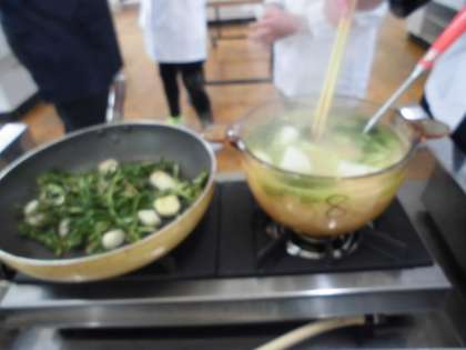 今日はひまわり学級で調理実習をしました。自分たちで育てた大根やカブを調理しました。