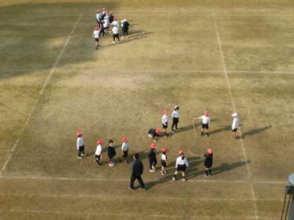 2年生は、体育でなわとびをしていました。後半には班に分かれて大縄にチャレンジしていました。