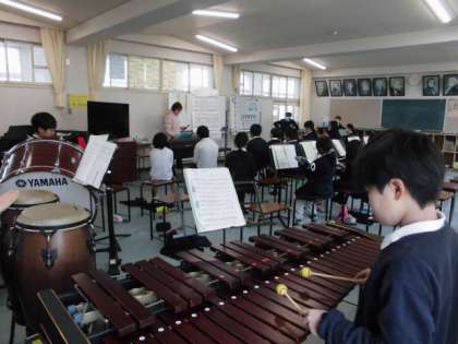 5年生は合奏の練習をしていました。パートごとにリズムや音程を確認していました。