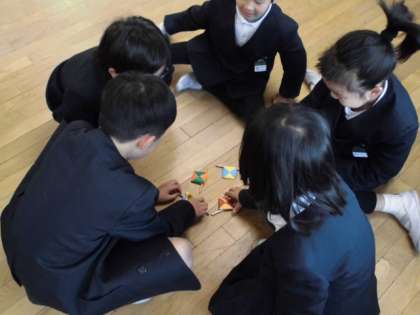 2年生は、昔遊びのめんこを図工で作り、遊び道具として使えるのかを試していました。楽しく遊べるように工夫をしていました。