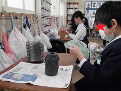 4年生は、作品展に出す立体作品を作っていました。完成に近づいています。