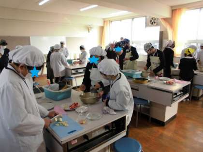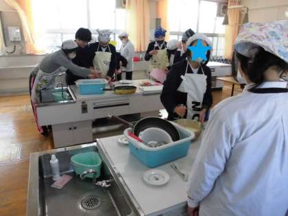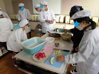 6年生は、1・2時間目に調理実習をしていました。クレープの生地を作ったり、フルーツを切ったりして、下準備をしていました。