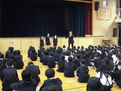 今週も全校朝会から始まりました。校長先生の話や転入生紹介、看護当番の先生の話などがありました。今週は土曜参観もありますので、寒さに負けず、頑張ってほしいです。