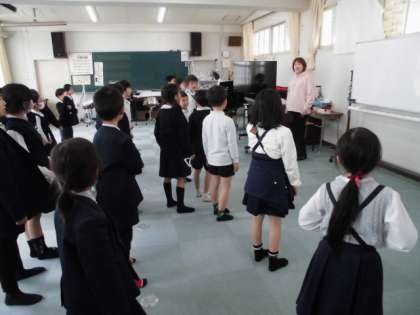 2年生は、最後の音楽の授業でした。ゲームを取り入れた音楽活動をして楽しんでいました。