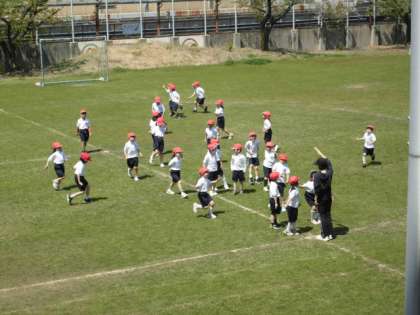 1年生は、体操服の着替え方や並び方の練習をしていました。芝生の上を元気に走っていました。