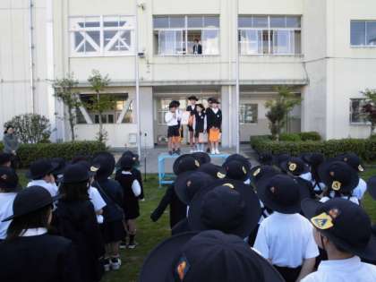 また、それぞれの委員会の委員長が、4月のめあてを発表しました。初めての発表でしたが、堂々と発表できていました。