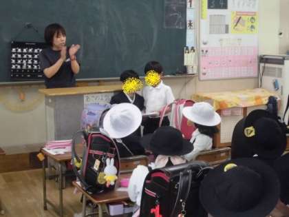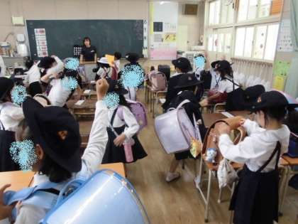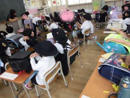 1年生の帰りの会の様子です。机の中や水筒のチェックも自分たちで行うことができてきています。帰りの会では、日直に当たっている人が、あいさつや司会進行を行っています。今日も元気に帰っていきました。
