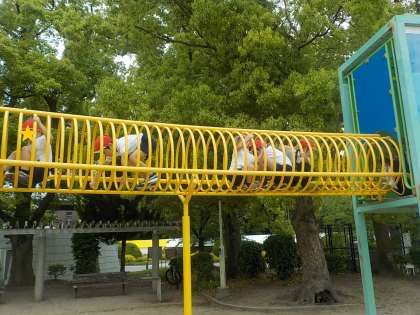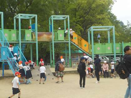 そのあとは遊具で遊びました。学級の友だちと大きな遊具で遊んで楽しんでいました。