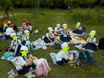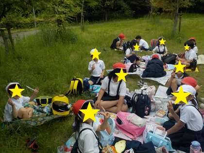 1・2年生 大阪城公園 公開日 2025/05/12 更新日 2025/05/12 学校日記 遊具で遊んだ後は、お昼ごはんの時間です。1年生は小学校初めて、2年生も久しぶりのお弁当でした。おいしいお弁当をいただきました。 いいね(0)