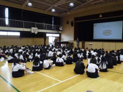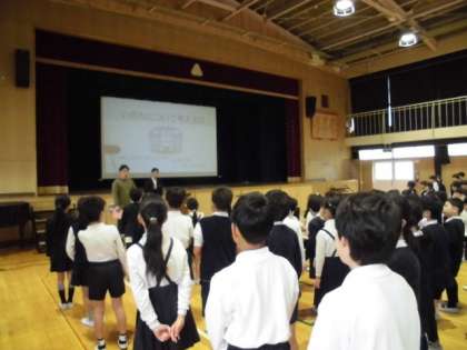 全校朝会 公開日 2025/05/12 更新日 2025/05/12 学校日記 今日は「いじめについて考える日」および「いのちについて考える日」です。全校朝会では、校長先生から友だちの大切さやいじめについての話がありました。子どもたちは、校長先生の身近で起きそうな話や絵本に真剣に耳を傾けていました。 いいね(0)