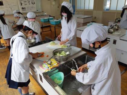 5年 調理実習 公開日 2025/06/05 更新日 2025/06/05 学校日記 5年生は、初の調理実習をしていました。お茶の入れ方とゆで野菜を作っていました。包丁の使い方ややけどなど、安全に注意して調理ができるよう話を聞いた後、調理を始めました。 いいね(0)