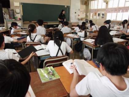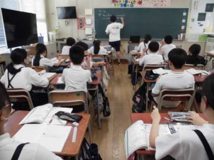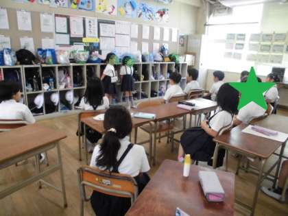 6年生は、算数で分数の計算をしていました。難しい単元ですが、真剣に話を聞いていました。