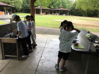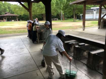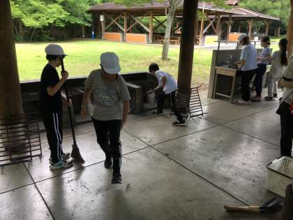 食べ終わった後はみんなで片付けです。「来た時よりも美しく」協力して片付けています。