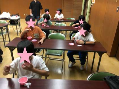涼しい場所でアイス休憩です。体調不良の子も出ていません。雨が少し心配ですが1時間ほど休憩をして、次は夕食です。