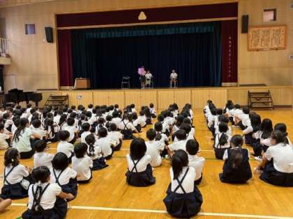 市歌、校歌の斉唱や児童の発表がありました。校長先生からの話では、最後にみんなで「世界中の子どもたちが」を歌って笑顔で閉式しました。2学期に元気な顔を見れるのを楽しみにしています。