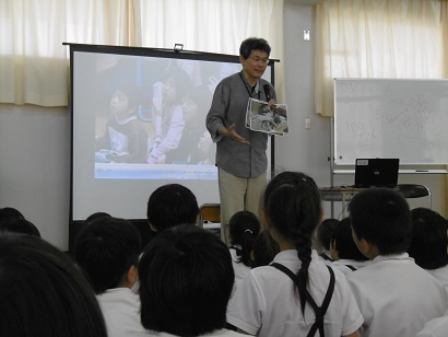 7月4日(月)、全学年を対象として、野宿者ネットワークの生田武志さんによる出前授業を実施しました。最初、講師の先生に「どうして野宿しているのかな」と質問されると、「火事とかで家がなくなった」「働けなくなった」等、自分の考えを発表しました。お話を真剣に聞き、講師先生の「いらない失っていい命なんてない」を心に刻みました。