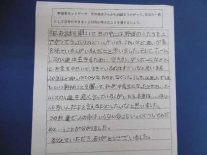 「野宿者」について理解を深める出前授業