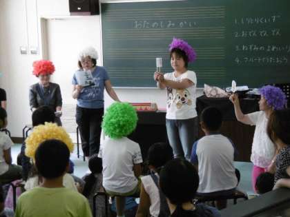「図書ボランティアの皆様によるお楽しみ会」が7月行われました。今年は、図書の蔵書のバーコード管理準備のため、夏休みの貸出できなかたっり、図書館開放がなかったりしました。バーコード化は図書ボランティアの皆様や教職員、図書補助員がいっしょになって無事終了することができました。ありがとうございました。