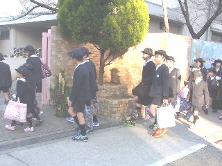 門松に迎えられ、今年1年元気いっぱい学校生活を送ります。