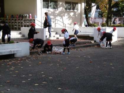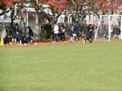 校庭や学校の正門に桜や柿の木があり、紅葉しています。季節感を感じるのですが、落ち葉がとても多いのです。毎朝管理作業員さんが掃き集め、子どもたちの通学に支障がないように、学校で安全に過ごせるようにしてくださっています。