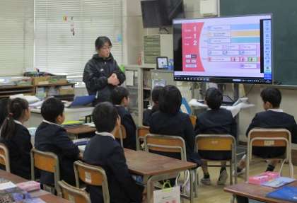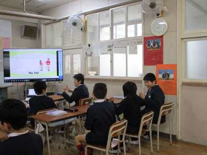 大阪市では、平成30年度低学年から「モジュール」(45分間以外の時間設定)での英語学習を実施します。本校では、平成28年度の3学期から毎週金曜日朝の時間(15〜20分程度)を活用し、全学年で取り組んでいます。まずは、英語に親しみ外国語を学ぶ楽しさを感じてほしいと思っています。
