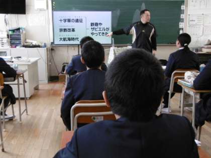 城陽中学校ガイダンスに引き続き、城陽中学校の先生に来校いただき、6年生に社会科(歴史)の授業をしていただきました。子どもたちは、お話をしっかり聞きながら学ぶことがで、「中学校」の雰囲気を少し体験することができました。