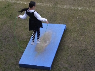 右の写真にあるジャンピングボードは管理作業員の手づくりです。この上に乗って高く高く跳びあがり、ハヤブサなどの二重とびのわざを身につけていきます。2月19日の学校公開でもご覧いただけます。ご期待ください。