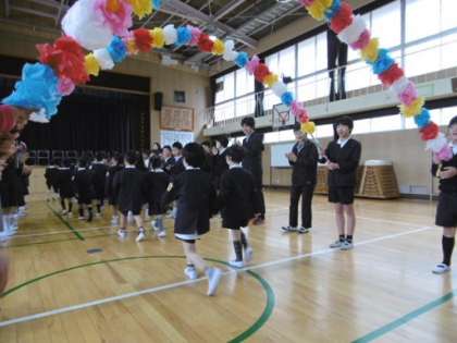 1年生をあたたかく迎える上級生。森之宮小学校の児童みんながすくすく成長することを願っています。