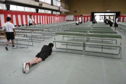 前日までの準備では、全学年気持ちよく地域の皆様が敬老祝賀会を迎えることができるようにと、全力で準備しました。気持ちが十分伝わるお手紙にしたくって、一生懸命ひらがなを丁寧に書いた1年生。この気持ちはどの学年も同じです。「最高の会場」になるよう6年生を中心に会場準備に取り組みました。