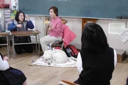 PTA人権成人教育委員会のご協力を得て、3年生は盲導犬との暮らしについて学びました。盲導犬と暮らしている山本様を講師としてお招きしました。「目が見えないことは不幸なことではありませんよ。」など、わかりやすく丁寧にお話しいただき、児童は「教科書で勉強したことより、もっとたくさん学ぶことができました」と発表していました。山本様ありがとうございました。