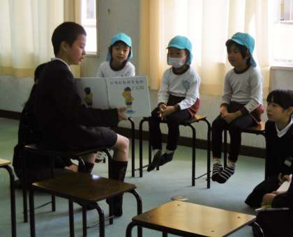 新1年生は小学校に対する不安感の減少を、在校生には年下の学年への思いやりと仲間意識の育成をめざして、保育園や幼稚園との交流を行っています。今回は5年生による絵本の読み聞かせでした。「どんな本が好きかな」「どう読んだら面白さが伝わるかな」と5年生はしっかり考えて当日を迎えました。園児のみなさんの「面白かった!ありがとう」で笑顔になった5年生です。