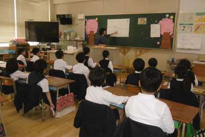 学習の様子 公開日 2018/04/16 更新日 2018/04/16 学校日記 1年生は鉛筆の持ち方や書く時の姿勢の説明を聞き、運筆の学習をしていました。点線に沿ってみんなしっかり書いていました。3年生は国語科「春の子ども」の詩の視写をしていました。大型テレビ画面や先生の視写を見ながら、文字の形や大きさに気を付け、丁寧に書いていました。5年生は算数科「整数と小数」の学習をしていました。整数や小数を10倍・100倍した時の位と小数点の変化を調べていました。 いいね(0)
