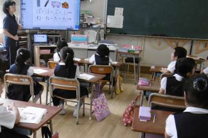 1年生は「ふたとぶた」の学習で、清音と濁音のことばと、ひらがなの筆順にそって書く学習をしていました。